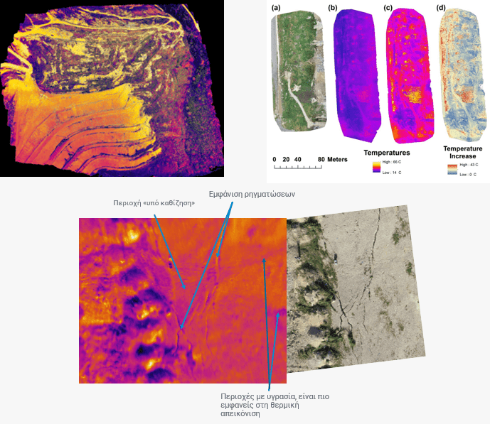 With this approach, we conduct a thermal analysis of the ground surface to identify thermal “hotspots,” classify different soil materials, detect methane leaks, and map surface cracks.